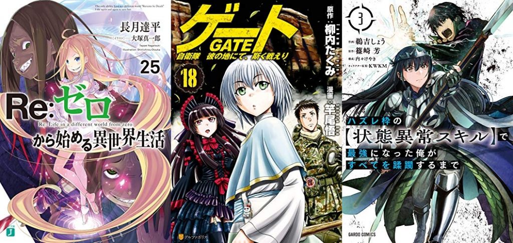 本日はライトノベルに「 Re:ゼロから始める異世界生活 25」などが、コミックに「ゲート 自衛隊 彼の地にて、斯く戦えり18」「ハズレ枠の」「北欧貴族と猛禽妻の雪国狩り暮らし 5」「いずれ最強の錬金術師?3」「黒の召喚士 8」「効率厨魔導師、第二の人生で魔導を極める8」「 GIGANT(7)」「ご注文はうさぎですか? 9巻」などが登場しています。